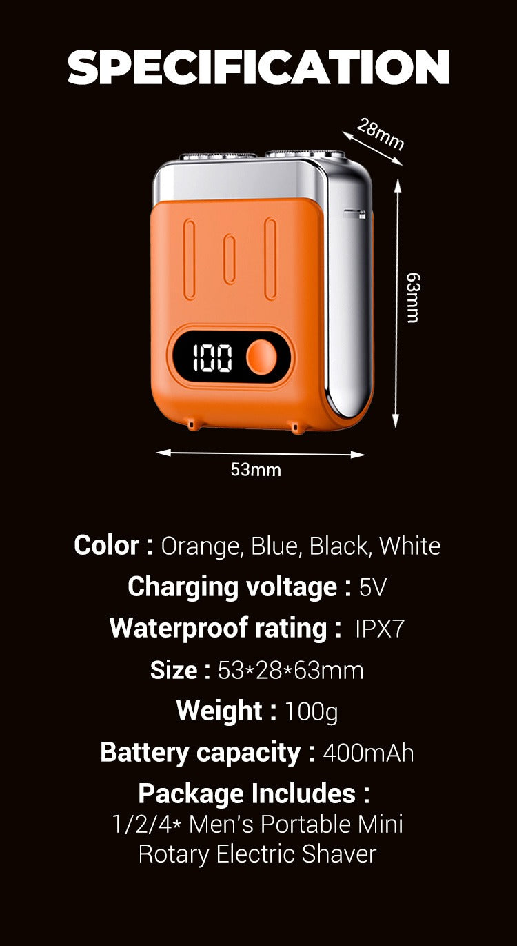 Enjoy up to 60 days of usage on a single charge with the Mini Rotary Electric Shaver. Equipped with universal Type-C fast charging, it ensures quick and convenient recharging, making it perfect for travel or daily use. Reliable power, anytime, anywhere!